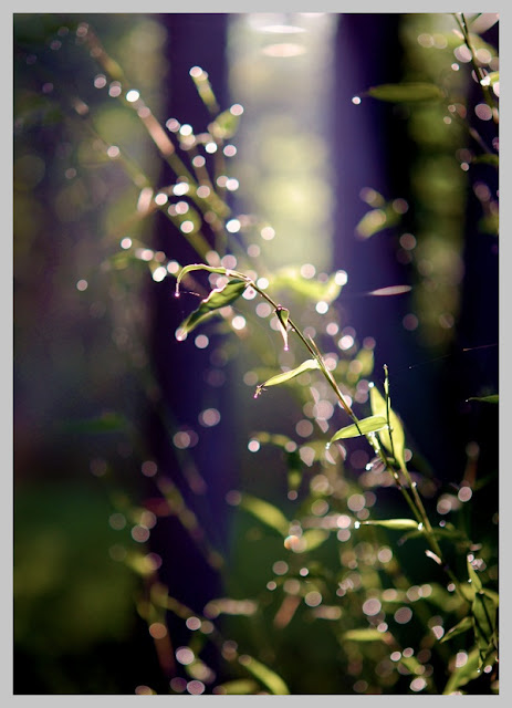 Love those morning dew drops on the bamboo! A few years ago, while visiting my brother and his wife in Singapore, we took a side trip to Malaysia, where I was amazed to see the great heights to which bamboo ('vegetal steel') can be used for construction scaffolding. To see some impressive examples click here.